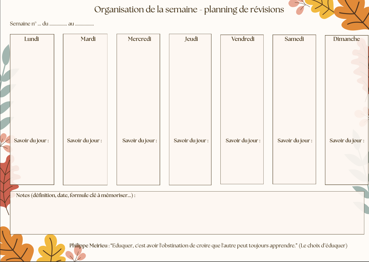 Agenda & Organisateur : Planifie tes révisions avec un semainier clair.